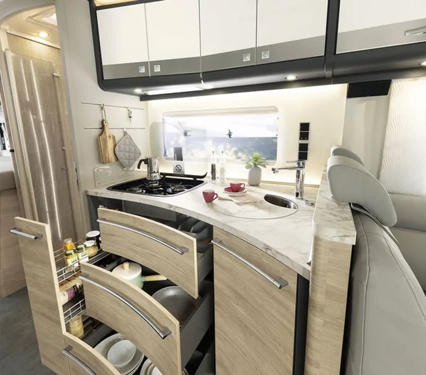 Motorhomes designed for “adventurous couples” with a generous amount of space and comfort – for all seasons.