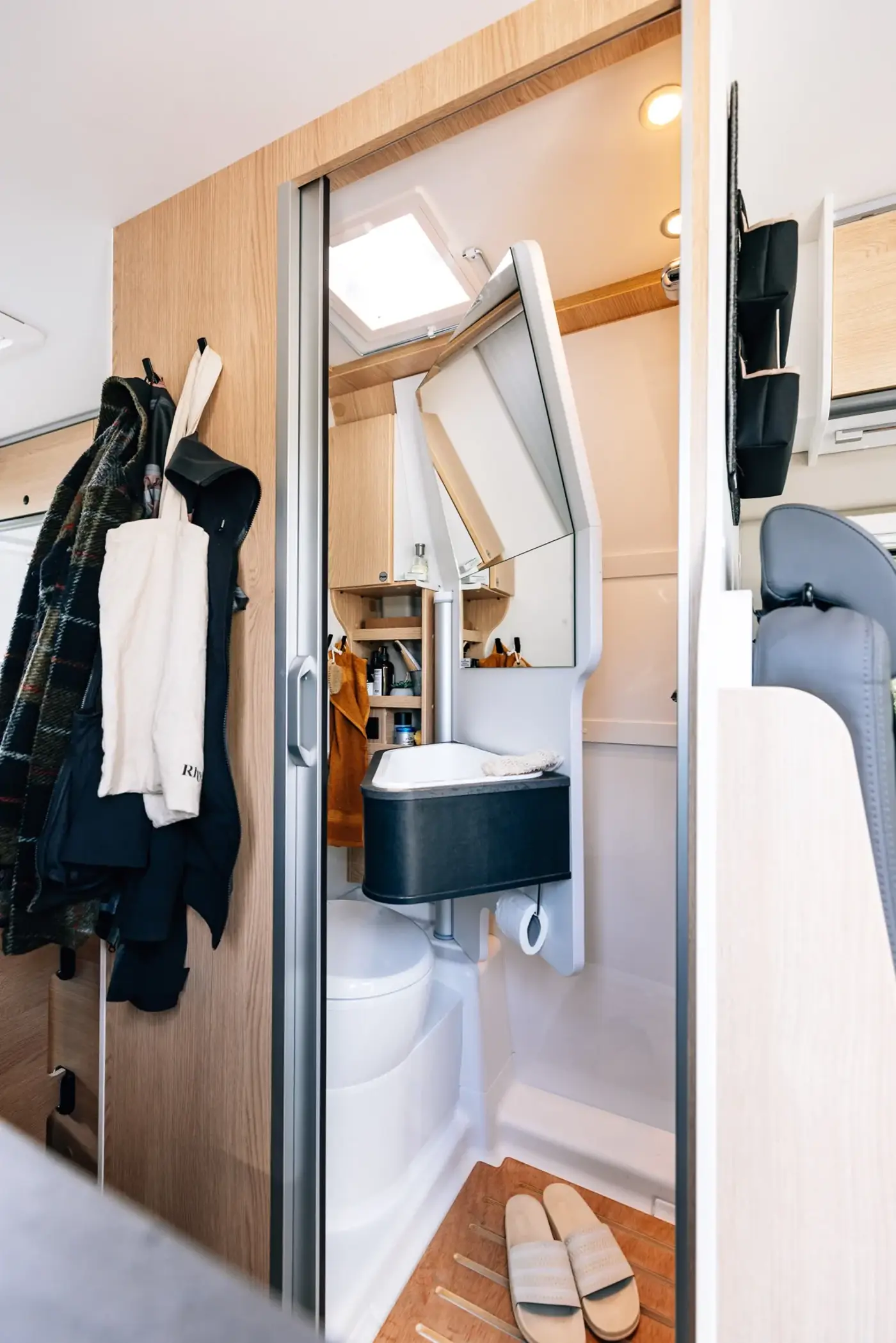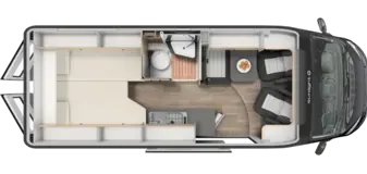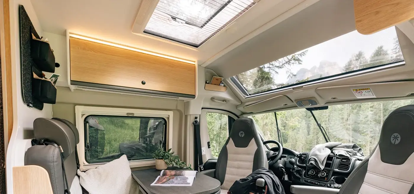 Meet our deluxe camper van: the CLIFF X. It's decked out with premium furnishings, a unique swivel bathroom, and a panoramic window for stunning views. Optional pop-top roof available!