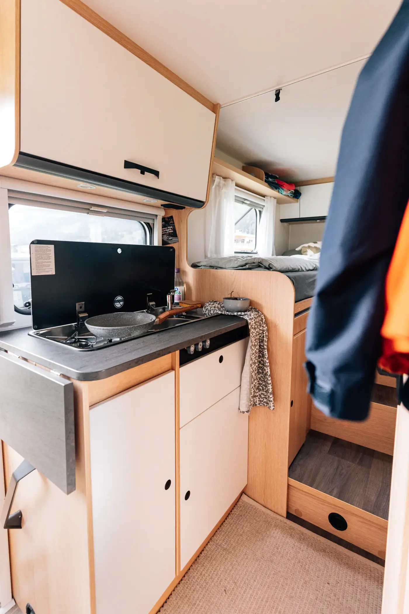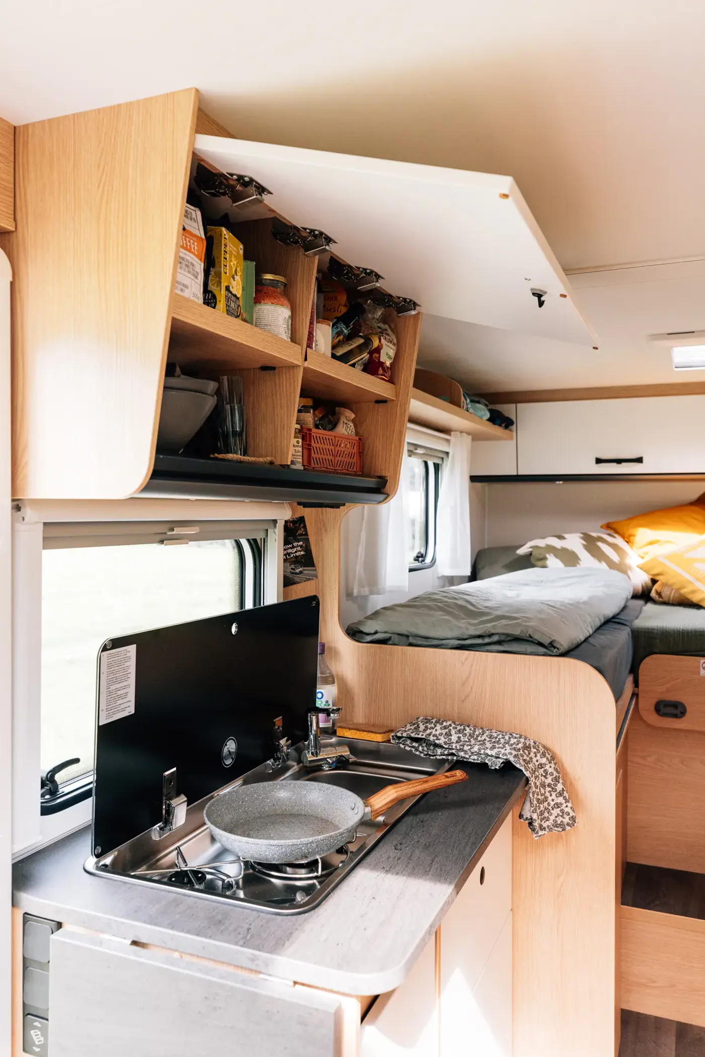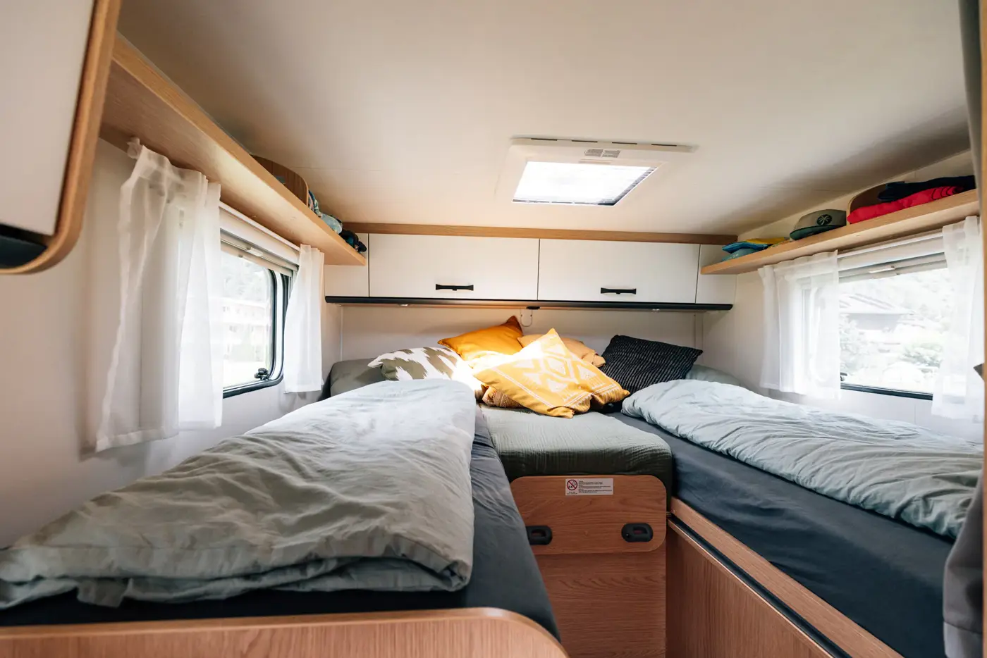 Want to store all your equipment without sacrificing agility on the road? Our trim and slim motorhomes – which we lovingly call VANs – offer ample room in the living space and the separate rear garage.