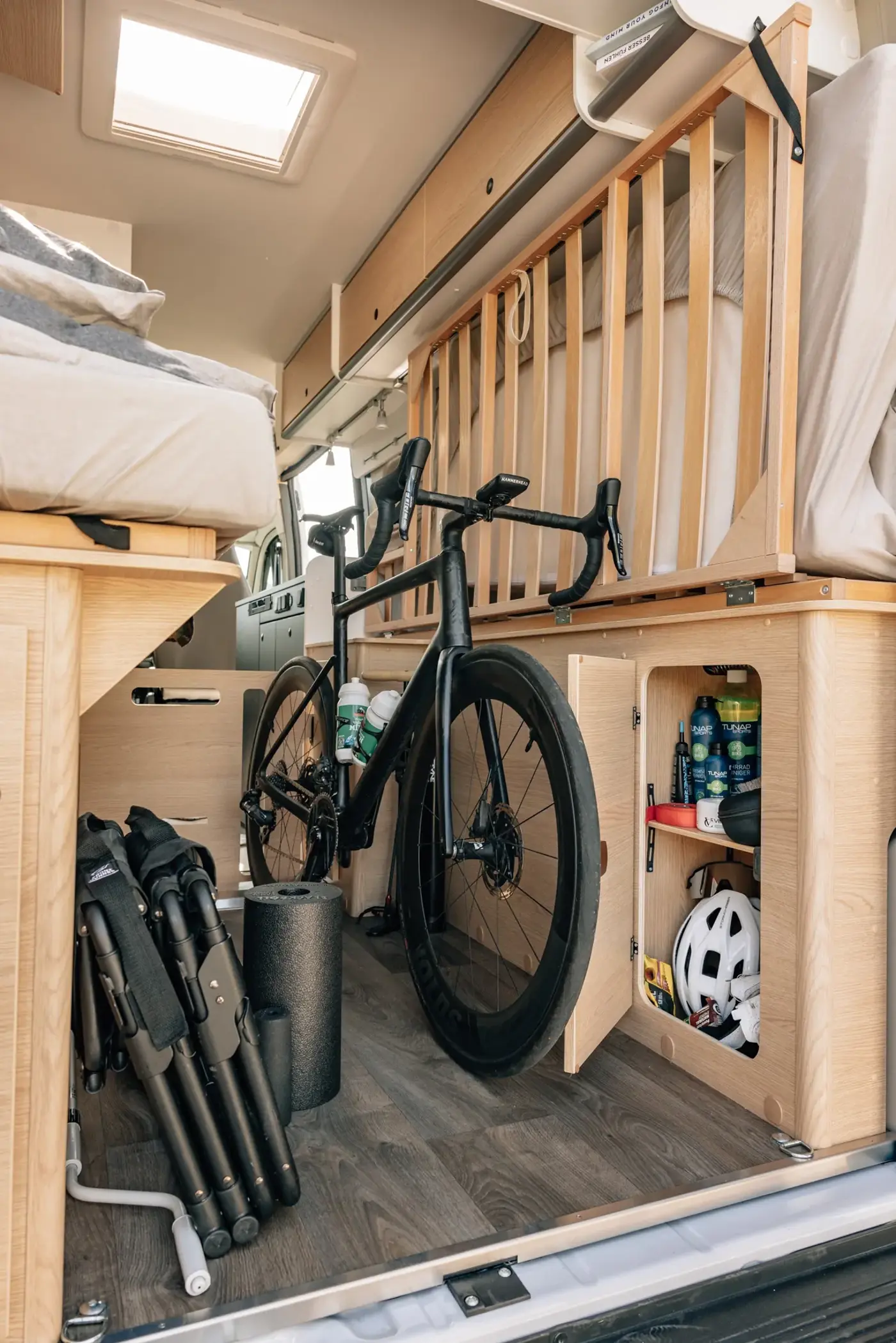 Meet our deluxe camper van: the CLIFF X. It's decked out with premium furnishings, a unique swivel bathroom, and a panoramic window for stunning views. Optional pop-top roof available!
